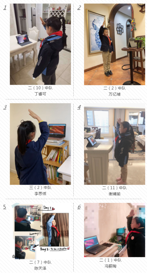听说周一要举行线上升旗仪式时,小朋友非常好奇、也非常期待,临睡前特意把校服和红领巾都准备好,还定好了闹钟。希望升旗仪式后,许久没有上学的孩子们能找回些思念许久的校园生活的感觉。愿春暖花开之际,中国早日战胜病毒,孩子们早日回到校园!
