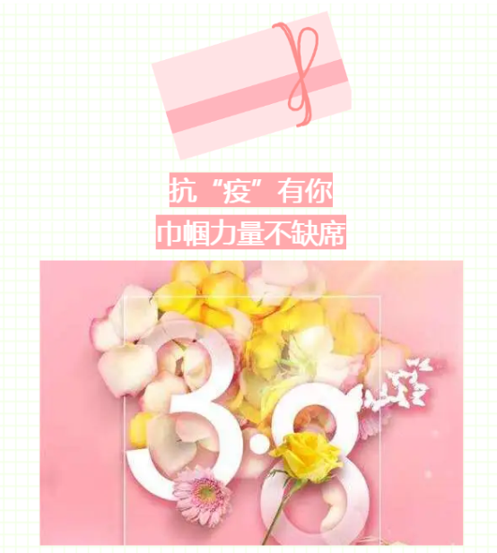 冰心女士曾说过,世界上若没有女人,这世界至少要失去十分之五的真,十分之六的善,十分之七的美。你们是防疫战线上最美丽的风景;你们是每个家庭中最暖人心的一束光。在全国上下万众一心抗击疫情的特殊时期,你们正书写着中华大地巾帼不让须眉的时代华章。