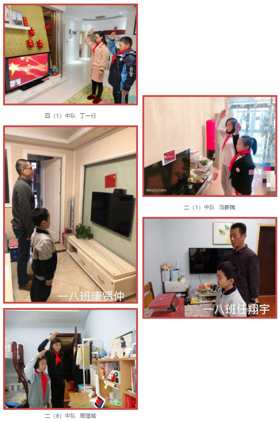 今天上午8点30分,伟德可信任网站全体学生和家长都戴上了鲜艳的红领巾,在家中共同参加线上升旗仪式。五星红旗冉冉升起,少先队员们和家长们高唱国歌,敬队礼、行注目礼。