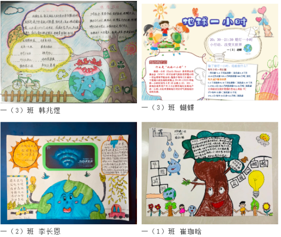 熄灯一小时这项活动旨在激发人们对保护地球的责任感,月小的同学们不光参与活动,更运用手中的画笔,将自己对于“地球一小时”的理解绘制成了小报。