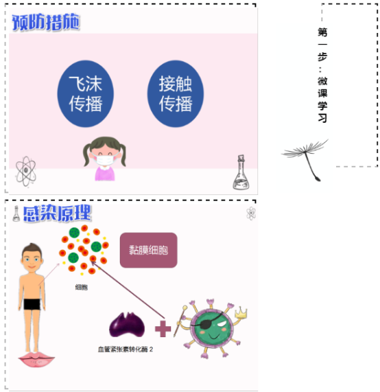 第一步:微课学习。首先,同学们通过科普视频了解、回顾了防疫相关知识。