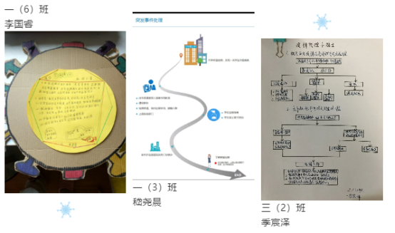 同学们认真思考学校可能存在的防控隐患和问题,从校门疏通安排到用餐安全、个人防护和教学场所消毒,甚至课间防控、突发事件处理等方面都进行了全方位的设计。他们考虑到了许多成年人想不到的地方,并且处理更人性化。相信在老师与学生共同规划与建设下,我们的校园防控会更加全面、有效。