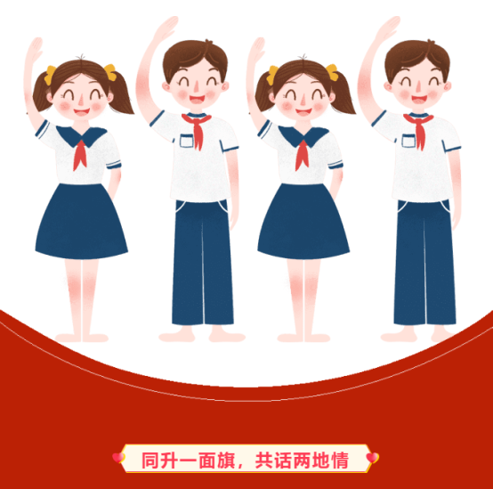 尊敬的老师们,亲爱的同学们,我是来自三(1)中队的刘润珩,今天我国旗下讲话的题目是《同升一面旗,共话两地情》。