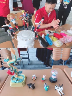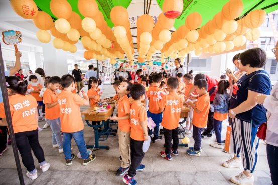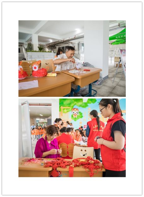 传统剪纸、糖人泥人、巧手编织、玲珑花灯,古韵白局,这些民间艺术为我们的活动增光添彩。剪纸的老艺人手持一把精巧的小剪刀上下飞舞,三下两下,一枚精巧的图案跃然纸上;捏面人儿的老师傅一边询问着孩子们喜欢的动物,一边搓着手中的面团,在孩子们的惊叹声中,孙悟空、玉兔、嫦娥,这些精美的作品一个又一个的诞生;一根根五彩的丝线, 一个个精致的中国结,阿姨一双巧手,为孩子们带来一场编织盛宴;二胡、琵琶、三弦、竹笛,白局艺人伴随着民乐咿咿呀呀的唱了起来,十分生动有趣。