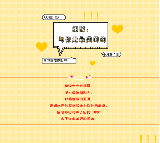 五月的月华园,阳光正暖 ,思念正浓。一大早,洁净的教室,整齐的桌椅,熟悉的老师早已张望在教室门前,他们精心装扮,时刻准备着那阔别已久的重逢!