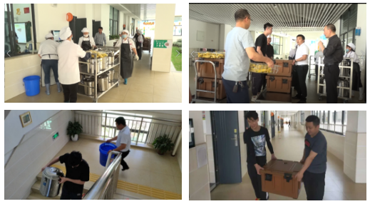 11点50分,孩子们迎来了难忘的午餐时光。为了让孩子们吃上热气腾腾的美味午餐,月小的男教师们勇挑重担,他们两两组队,把一箱箱满载着近50份的爱心午餐送往校园里的每一个班级。一楼、二楼、三楼,他们脚下的步伐越来越沉重,身上的衣衫也逐渐被浸湿,可眼中的光芒却依旧如此的坚定。