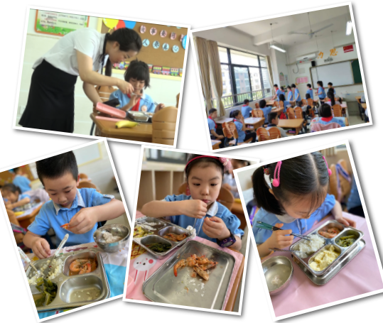 教室里,在班主任和任课老师的指导下,孩子们间隔1米整齐有序地排队洗手、做好就餐准备。铺桌垫,摆餐具,排队取餐......手法十分熟练,个个都是最棒的月华自理小能手!准备就绪,轻轻地打开饭盒,蛋羹、大虾、肉圆、空心菜,丰富多样的午餐荤素搭配、营养又美味,静静地吃上一口,真是甜了舌尖,又暖了心间!