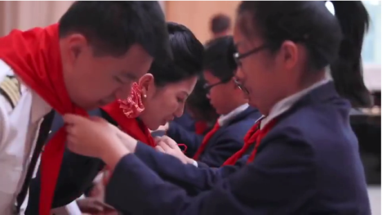 下午1点30分,当明媚的的阳光穿过窗弦,一曲《我爱祖国的蓝天》响彻整个报告厅,孩子们热情地挥动双手,甜甜的笑脸,悠扬的歌声,鲜艳的红领巾是对整个援鄂机组代表最隆重的欢迎。