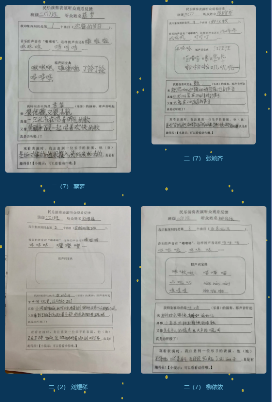 在魏雯雯老师的讲解下,积淀着数千年中国历史文化的中国民乐与散发着独特魅力的民族乐器一一呈现,“小月芽”们用心地感受着、思考着,在优美动听的音乐中感受民乐的魅力,展开艺术的想象。
