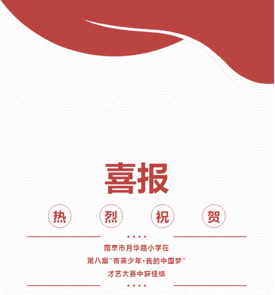 近日,第八届“菁英少年·我的中国梦”南京市少儿才艺大赛圆满落下帷幕。本次大赛我市有130多家中小学、幼儿园和民办机构参赛,6500多名选手参加个人才艺表演类比赛,16000多名选手参加个人才艺书画类比赛。经过大赛组委会专家初评、复评和终评,同学们以优异的成绩斩获佳绩,展示了月华少年的风采。