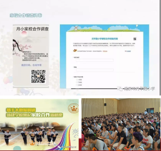 家校共育工作的重要性自建校起就被写入学校“三棵树”课程体系的顶层设计。作为一所新建学校,如何迅速地和家庭达成教育共识,形成家校统一战线?高效的家校合作是重要突破口。为了得到所有家长对学校各方面教学与管理的评价、建议与期待,学校利用大数据平台,设计家校共育调研问卷,家长通过二维码扫码方式匿名参与作答,全员甚至超员完成数据调研,真诚、自然地交流了学校、教师、学生、家长各方面的问题。有效的数据支撑和意见反馈,目标性的教育研究让我们更加明确了家长参与家校合作的动机,了解了家长对学校办学方方面面的满意度,熟知了所有在校学生的校园生活适应状况,为携手合作的共识达成奠定了夯实的基础。基于数据调研的成果,学校点面结合地开设形式多样的家校共育特色课程,针对不同年级学生的身心发展特点,通过专家授课、名师点拨、成长面对面、经验分享、个案答疑等方式,为家长提供专业、有操作的家庭教育指导,帮助家长认识、突破孩子的成长难点。