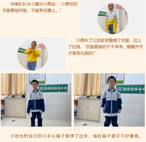 “小彩虹侦察队”突然发现,之前我们的行为习惯和“餐饮之礼”、“行走之礼”、“仪表之礼”的要求相比还差的很多呢!这会不会就是“绅绅”和“淑淑”出走的原因呢?