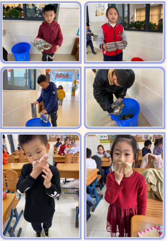 吃完饭的小彩虹们俨然变成一只可爱的“小花猫”,脸上满是食物的“痕迹”,应该怎么办呢?孩子们纷纷拿起小毛巾和抽纸,细心的擦拭自己的嘴巴和脸蛋,干干净净真文明!