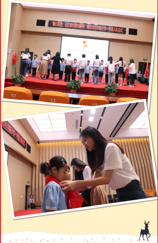 火炬引路,星星导航,红旗的一角,鲜艳荣光。镜头前,老师们、少先队员们熟练地为每一位新队员系上鲜艳的红领巾。望着飘在胸前的崭新的红领巾,难以言说的喜悦与自豪洋溢在一张张稚嫩的脸上。