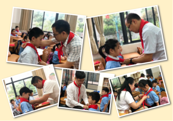 学校特聘请9位老师为少先队中队辅导员。学校的大队委代表为9名辅导员老师送上了我们少先队员最珍贵的礼物——红领巾,夏翠莲校长为他们颁发了中队辅导员聘书。