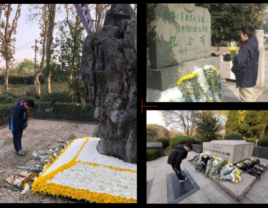 12月11日上午,在家长的组织下,队员们自发前往17处不同的侵华日军南京大屠杀遇难同胞丛葬地,向遇难同胞们表达自己的悼念。