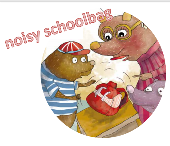 课内阅读材料:《丽声北极星分级绘本第一级上》My Noisy Schoolbag 自制课件、核心单词卡片、学具图片 | ||
