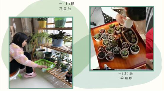 在天气晴朗的时候,在家里我会给绿植浇浇水,他们在阳光的沐浴下吐出了嫩嫩的小芽。