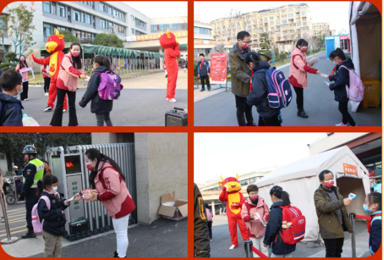 春风和煦,阳光正暖。2月22日上午7:30,伴随着欢快的歌声,“小月芽”们有序地穿过测温门,快速地走进校园。微笑挂在嘴角,幸福荡漾心间,蓬勃的朝气弥漫了整个校园。轻轻地接过老师手中特别的“开学礼物”,恭敬地回上一个队礼,和“牛牛、犇犇”give me five,幸福的学习之旅从这一刻开始!