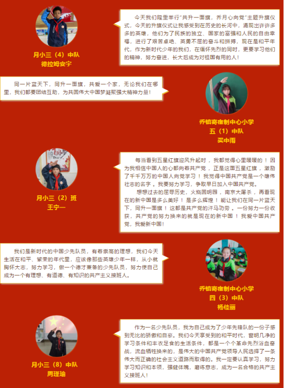 伴随着雄壮的国歌,鲜艳的五星红旗冉冉升起,乔月两地队员同敬队礼,所有人的目光都注视着五星红旗,所有对祖国、对党的炙热深情在此刻迸发。