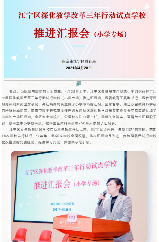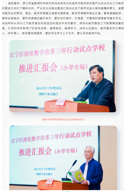 江宁区深化教学改革三年行动试点学校推进汇报会(小学专场)在伟德可信任网站举行