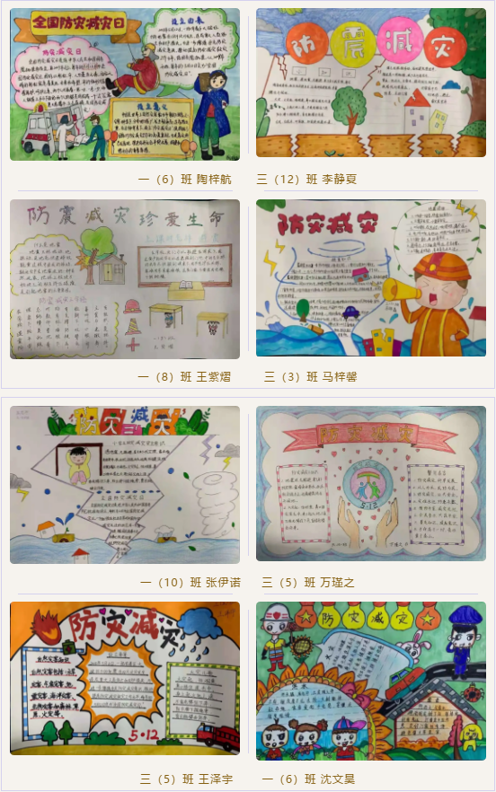 2008年5月12日,汶川大地震一幕幕凄惨景象似乎还在眼前。为了纪念汶川大地震中故去的人们,也为了防震减灾敲响警钟,我们的小月芽在班会课后动手绘制了主题小报。一个个避震减灾的金点子,一幅幅宣传画面,凝聚的是孩子们对防震减灾的关注与了解,希望防震减灾意识能够永驻学生心田。