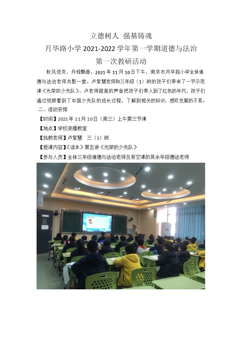 【校本研修】立德树人 强基铸魂 月华路小学2021-2022学年第一学期道德与法治 第一次教研活动