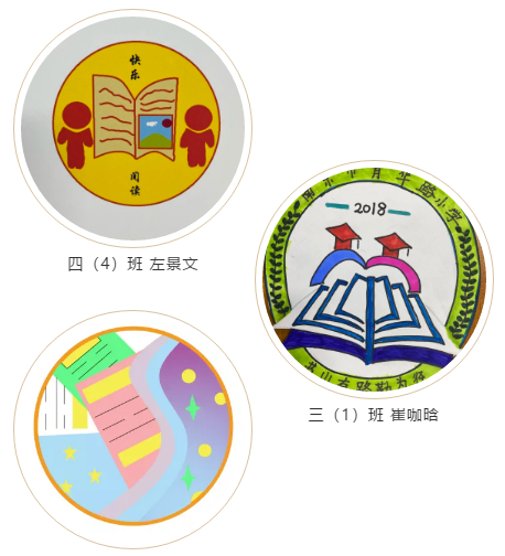 为了更好地向“小月芽”们传递月亮湾图书馆的理念,图书管理员们还设计出了“图书馆会徽”。瞧,这是四(5)班江歆语同学设计的图书馆会徽,五彩的颜色代表了阅读的快乐。四(4)班左景文同学以“书”和“学生”为主,以简易的线条设计,传递快乐阅读的理念。三(1)班崔咖晗同学以“书山有路勤为径”为设计理念进行创作,向大家传达了读书的重要性。