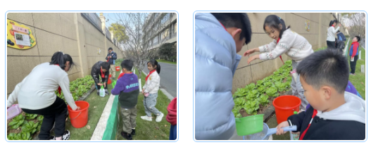 课余时间,“小农夫”坚守自己的菜园,观察植物的长势,及时松土、施肥、浇水,把一株株蔬菜养护得鲜翠欲滴。虽然盛满水的桶很重,但是“小农夫”们齐心协力,学着老农夫的样子定量浇灌,生怕“亏待”了任何一株“小生命”;虽然双手时常沾满泥巴,但看着自己菜园里的青菜、菠菜、香菜和茼蒿长势喜人,小月芽们哪里还顾得上脏和累,劳动的快乐是旁人体会不到的。