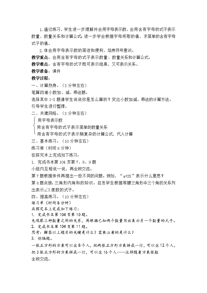 【校本教研:五六年级数学备课组】用字母表述数的研究课