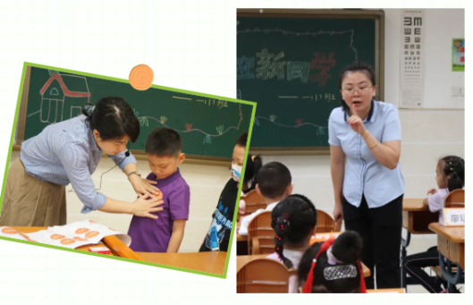 在至善路校区,当“小月芽”们满脸喜悦地和爸爸妈妈挥手告别、一步一步穿过测温门来到引导老师的身边时,他们惊喜地发现,早早等在那里的班主任能准确地叫出每一个孩子名字。“老师,您怎么知道我的名字的啊?”“老师当然有自己的小秘诀!我不仅知道你的名字,我还知道你喜欢什么呢!”其实,老师的小秘诀并不是老师的特异功能,只是在拿到班级名册后,反复背诵孩子的姓名,反复记忆他们在班级群里的生活照片,反复的电话沟通和家访,这就是月华的用心和深情。一瞬间,许多孩子眼里的紧张与不安化为惊喜。