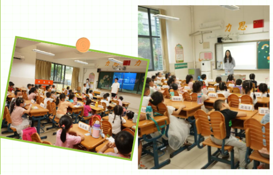 在湖东路校区,这份月华爱意可以是每个座位上老师为儿童准备的鲜艳气球和旺仔牛奶,可以是用蝴蝶结扎起的全新书本,也可以是代表着身体棒、品德棒、学业棒的“签到棒棒糖”。在欢快的《上学歌》中,儿童跟随着音乐的律动,轻唱着学习习惯小口令的儿歌。这一声轻唱,唱响了未来六年的月华欢歌,从今天起,幸福的月华之梦将伴随儿童成长。