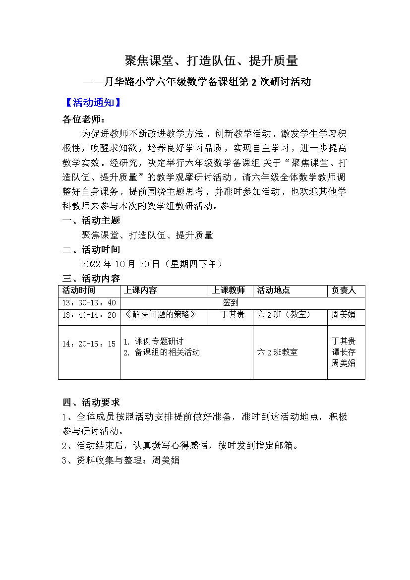 六年级数学备课组第2次活动