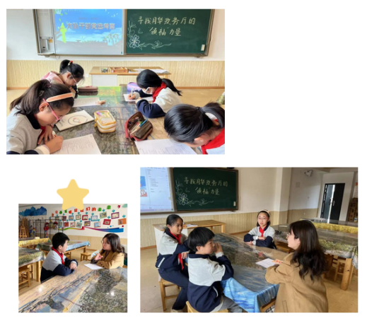 一条杠杠,一份责任。参选的队员们乐观大方、能歌善舞、沉着稳重,有着较强的组织和协调能力。为了进一步提升大队委的工作效度,帮助他们寻找到各自合适的管理岗位,学校大队部为参与竞选的准大队委们量身定制了问卷调查表,让所有候选人能够多维度地认识自我,挖掘自身潜能。面对茫然、心生退缩的候选干部们,大队辅导员胡蓉老师化身暖心的朋友,做候选队员的倾听者,与他们逐一沟通,细致地讲解少先队工作要求,鼓励他们勇于突破自我,在新的岗位上接受挑战。在一次次的沟通和鼓励中,队员们更加明确了适合自己的岗位,坚定的眼神里透露着责任的力量。