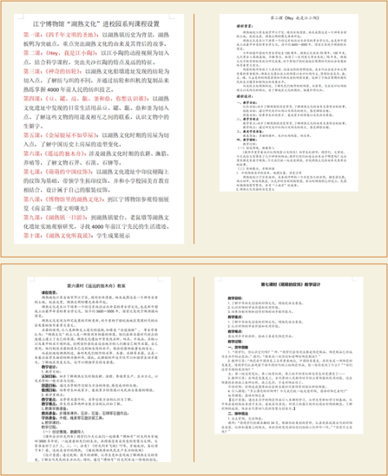 精彩亮相的背后,离不开课后服务“湖熟文化”课程开发组老师们精心的顶层设计。大家在课程规划、课时划分、教学设计、课件制作等方面反复论证、修改,最终将博物馆的“讲解词”汇编成了小月芽喜闻乐见的趣味课程。
