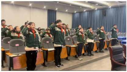 鲜艳的队旗指引前进的方向,高昂的歌声见证少年的志向。伴随着铿锵有力的《出旗曲》,大队旗手高举队旗步入会场。全体队员眼神坚定,精神振奋,用歌声唱出对未来无限希望。