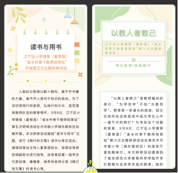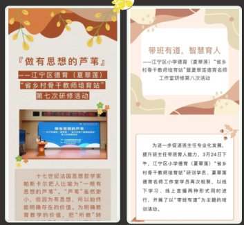 “读书与用书”“以教人者教己”“做有思想的芦苇”“带班有道,智慧育人”,短短一月间,江宁区小学德育(夏翠莲)“省乡村骨干教师培育站”主题研修活动开展了四次。活动中,培育站的成员和两校区的德育骨干教师积极参与,让更多的老师获得了成长的机会,实现了融合与德育的“双提升”。万众期待中,建校以来的第五本《年鉴》面世。不同以往,2022年的《年鉴》内容丰厚了许多,大量湖东路校区的人和事参与、记录到《年鉴》中,成为月华历史档案馆中的珍贵资料。目前,《年鉴》已在湖东路校区家长开放日活动中进行了赠阅,让一体化办学的成果展现在更多人的面前。