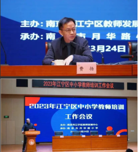 本月,由南京市江宁区教师发展中心主办的2023年江宁区中小学教师培训工作会议在学校召开。江宁区教育局人事科科长费扬出席会议并讲话。江宁区教师发展中心校长宋熠、副校长邓庆、孔姗姗,以及来自全区90余所中小学分管校长和负责教师培训的领导,近200人全程参加了本次会议,为学校教师的高质量发展推波助力。