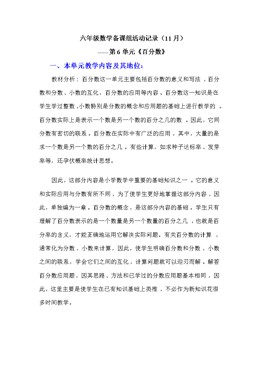 六年级上册数学备课组活动记录