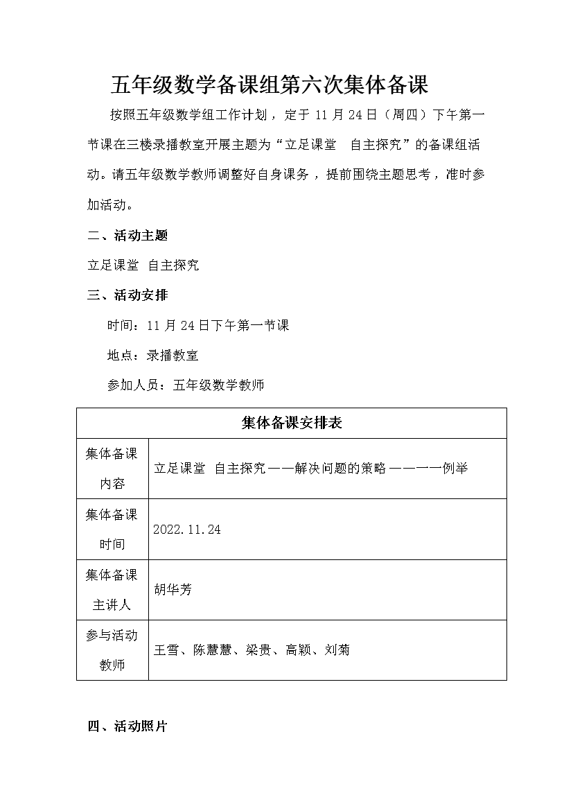 【五年级数学备课组】五上第六次集体备课