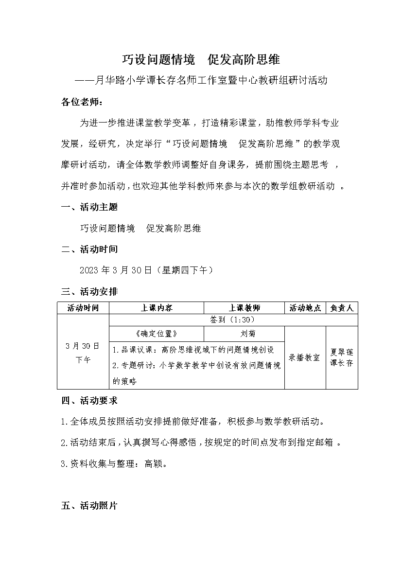 【校本研修:数学教研组】巧设问题情境 促发高阶思维