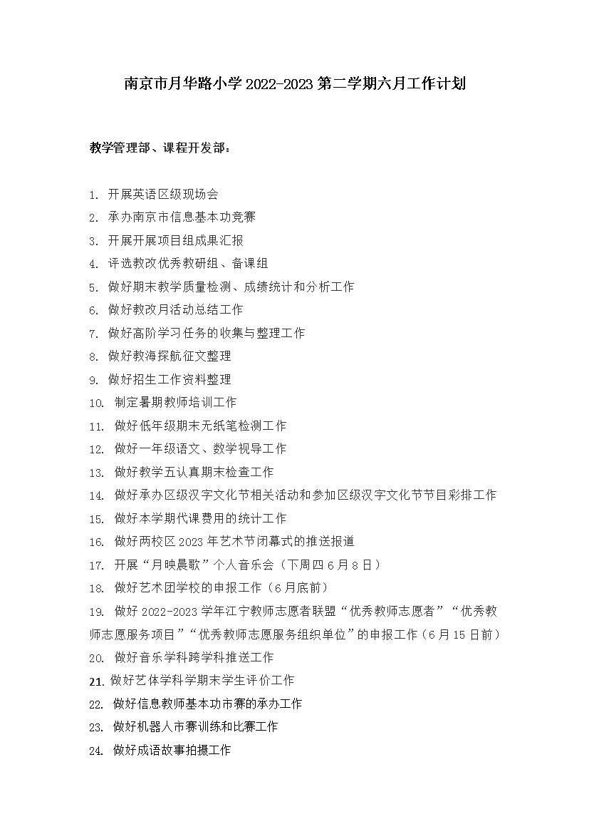 伟德可信任网站2022-2023第二学期六月工作计划