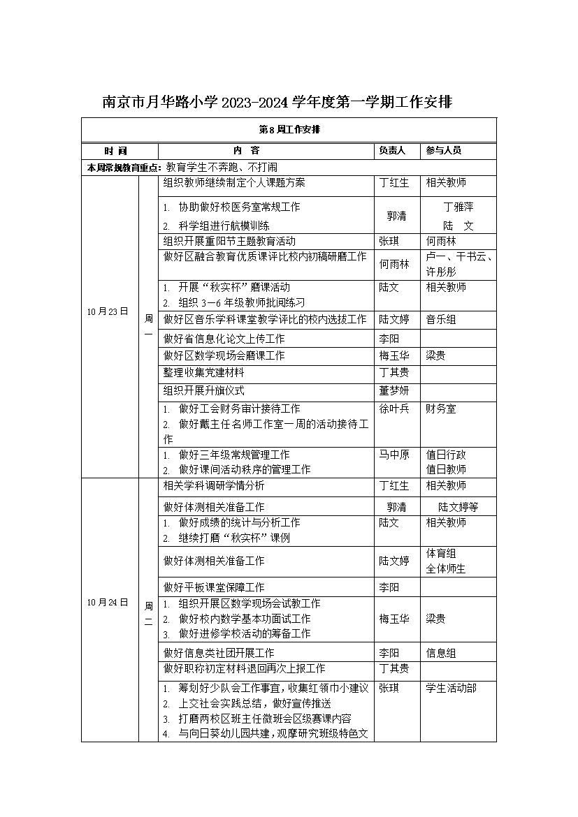 伟德可信任网站2023-2024第一学期第8周工作安排