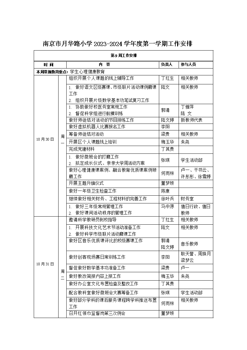 伟德可信任网站2023-2024第一学期第9周工作安排