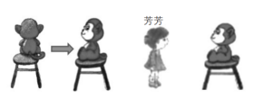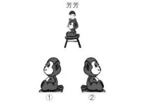 师:想象一下,芳芳站在那里(对面),看到的小猴会是什么样?