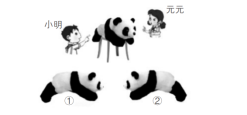 师:是不是①号呢,把自己想象成小明,(手拿熊猫转动、演示)真的是①号。