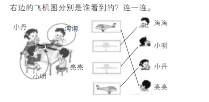师:让我们把自己想象成元元,她看到的就是②号。你们都会想象了!真好!