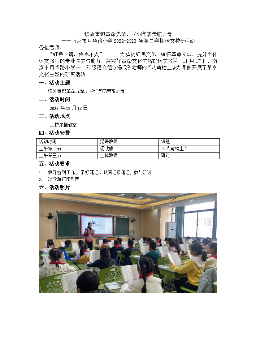 【校本研究:二年级语文备课组活动】读故事识革命先辈,学词句表崇敬之情