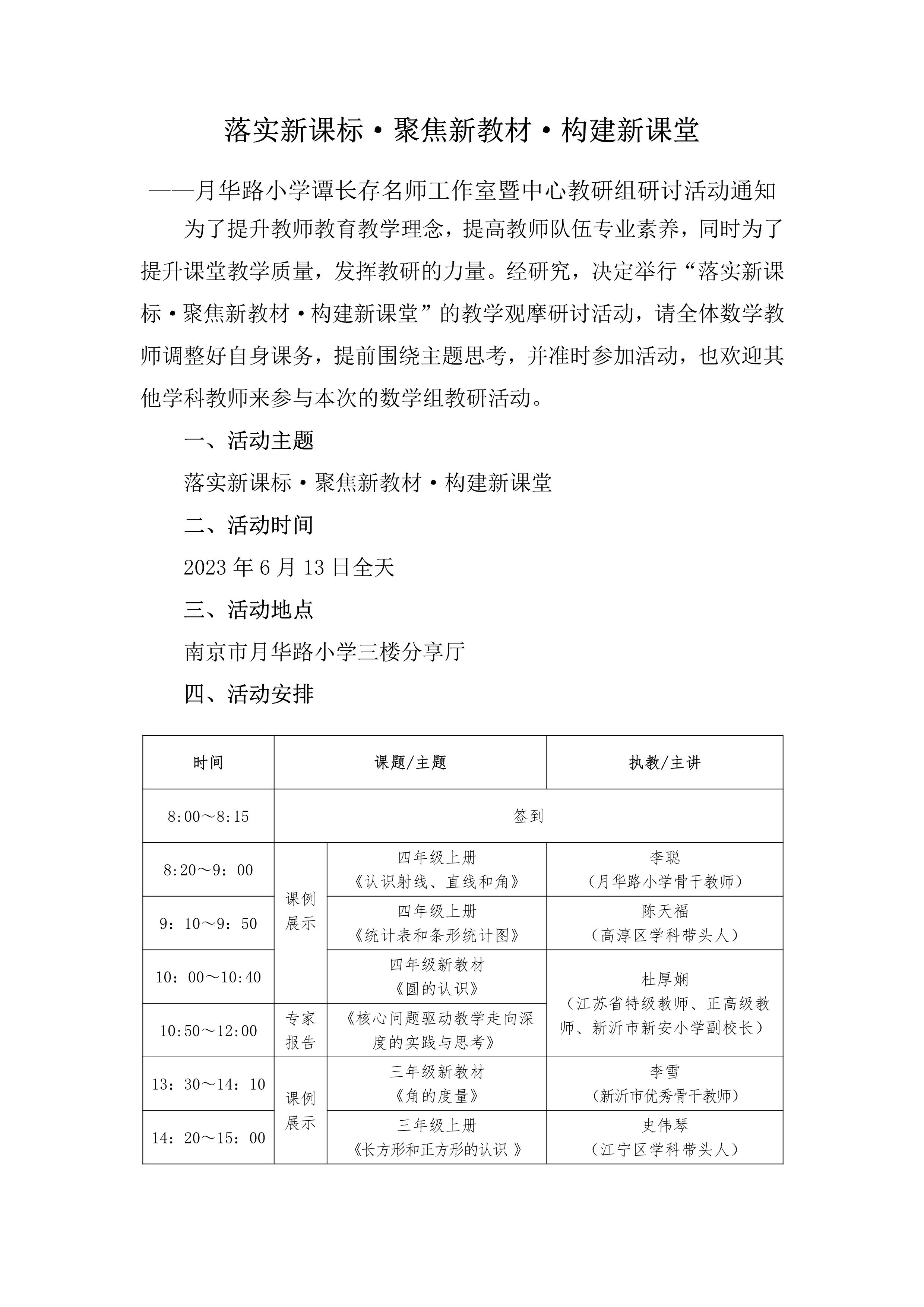 【校本研修:数学教研组】落实新课标·聚焦新教材·构建新课堂