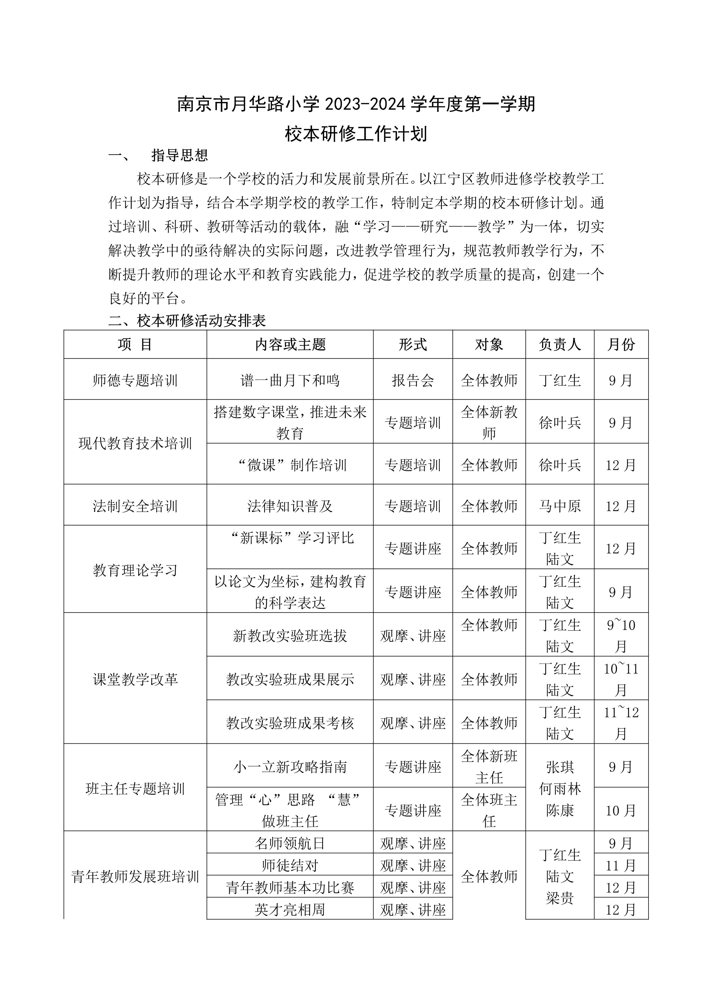 伟德可信任网站2023-2024学年度第一学期校本研修工作计划
